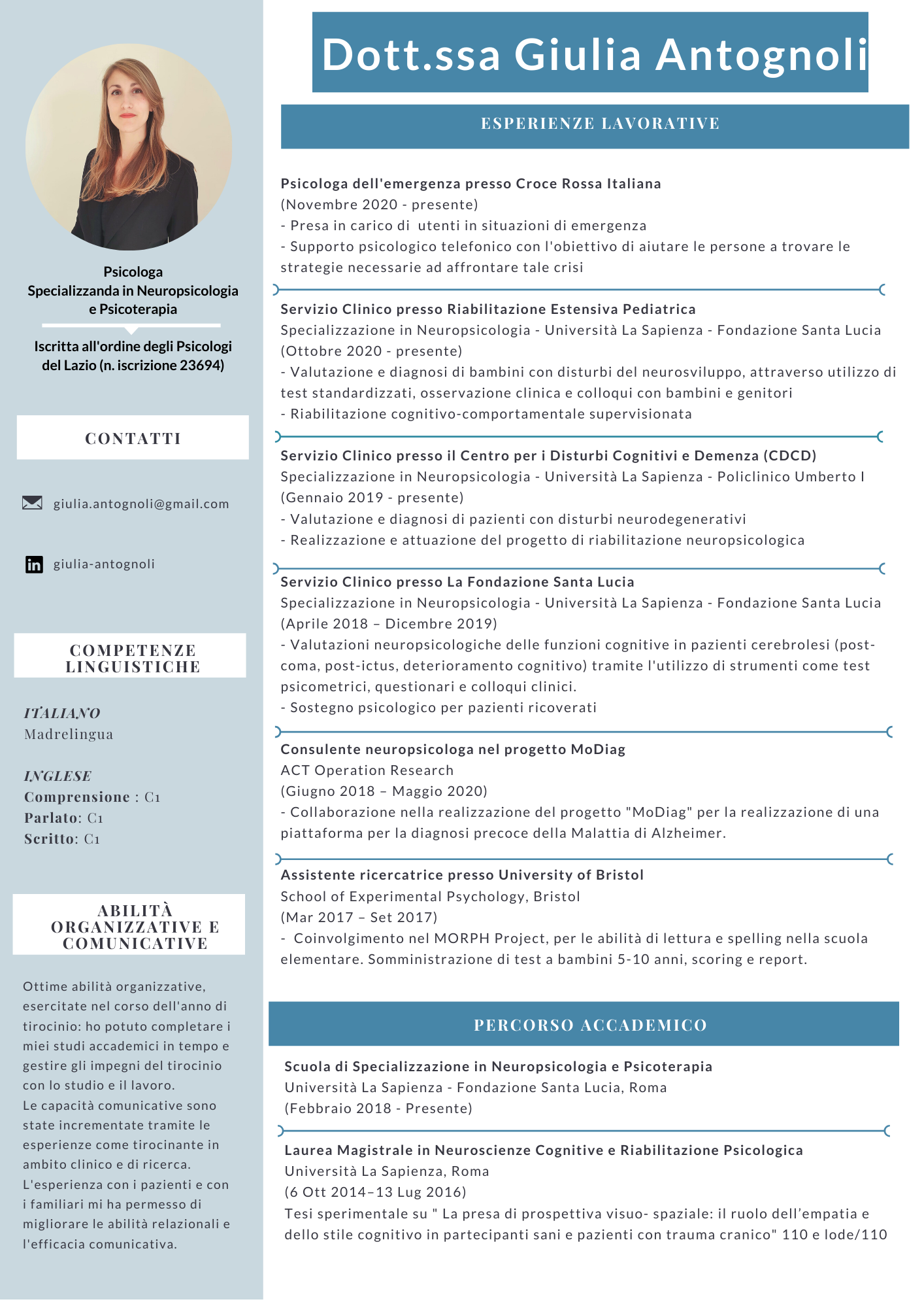 Sono esperta in test neuropsicologici per la valutazione dei disturbi delle funzioni cognitive (memoria, linguaggio, attenzione, funzioni esecutive).
